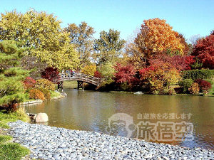 園内は山あり水あり、様々な植物が万石岩貯水池を取り囲み、念入りに設計された園林は、科学研究と観光の需要に基づいて、松杉園、棕園、バラ園、薬用植物園など20数種類もの植物区が順繰りに配置されています。