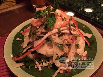 静安寺エリアにある、カジュアルなベトナム料理レストラン「CYCLO」。中二階のテーブル席は赤がベースの広々とした雰囲気。席に着くと、サービスのシュリンプチップ。暑いお国にピッタリのベトナムらしいドリンク ~ミントレモネード~にピッタリです。