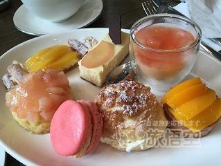 ババロア、タルト、パイ、ムース、マカロンetc 小ぶりで、色味も見た目も素敵なものばかり! ~ドライピーチ入りのスコーン~ ピーチジャム&クロテッドクリーム添え はアフターヌーンティー には欠かせません。 ~ハム&チーズサンド~や~スモークサーモンサンド~や~卵サンド~など、お食事もあり ます。 お紅茶 or コーヒー付きで、98元+サービス料でとてもリーズナブル。 毎月テーマが変わるので楽しみです! |