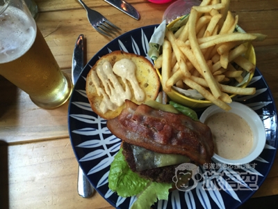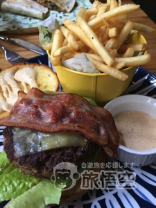 前菜は5種類ほど。〜ガーデンサラダ〜はビメガー&オイルでさっぱり。〜本日のスープ〜のレンズ豆スープはほくほくレンズ豆がたっぷりの優しい味でした。 メインは10種類ほどからチョイス。〜キャサディラス〜はチーズやチキン、パプリカの具沢山。ビールに合います。メイン 〜ベーコンチーズバーガー〜見た目通りのボリューム! ポテトは揚げたてで美味。+料金でデザートとコーヒーor紅茶もオーダーできます。 店内は広々。テラス席も充実しているので大人数でも楽しめます。 週末はブランチもあるそうです。 |