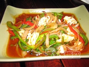 レストランは、屋内と屋外に別れていて、屋外はとても人気です。ライトの微妙な暗さと観葉植物がとてもいい雰囲気をつくりだしています。トイレも色鮮やかですがエスニックな絵などが飾られ、まるでタイにいるような気分に・・・個人的にこの店の雰囲気が気に入ってます。 一通りタイのメニューが揃っていますが、外国人の味覚にあわせて、辛さは若干控えめになっています。グリーンカレーは、ココナッツとスパイスがいい感じでブレンドされて、クリーミーな味付けとなっています。イカのタイ風サラダは、新鮮なイカと野菜が酸味と辛味に絶妙にマッチ!辛いのがすきな私は、ついつい手が止まりませんでした。カップルや仲のいい友達とゆっくり食事を楽しむにはばっちりのレストランです。 |