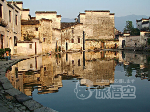 小さな田舎町のように見える宏村は清代に形成された村落で、山と水に囲まれています。その形から「牛型村落」と呼ばれ、山、木、橋、部屋をそれぞれ牛の体の一部にみたてています。牛の腸にみたてられている運河は山の泉を引いて各家の前まで運ばれ、生活用水として利用されています。運河は最後には風光明媚な南湖に流れ込みます。